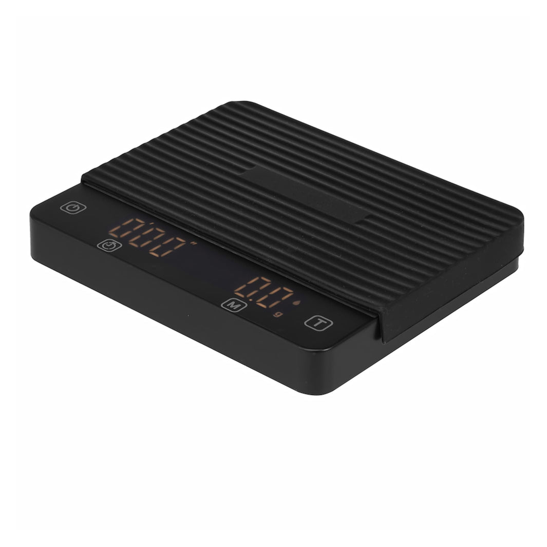 Enkel og praktisk kaffevekt med timer og alle funksjoner man trenger for å brygge espresso. Inkludert automatisk start av timer. Det følger med en matte i silikon for å kunne veie nøyaktig selv med varm kaffe på veieplaten. Plass til espressokopper og vekt på de fleste espressomaskiner. Kan enkelt kalibrereres. Auto off funksjon som slår av vekten etter tre minutter, kan slåes av. Oppladbar via USB-C (kabel følger med).